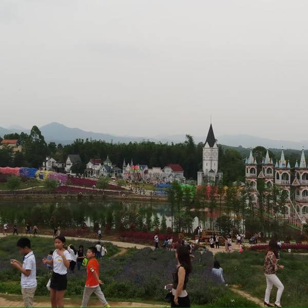 很多花朵,真的像是童话般的世界,还可以玩卡丁车,小孩子去应该很不错的!