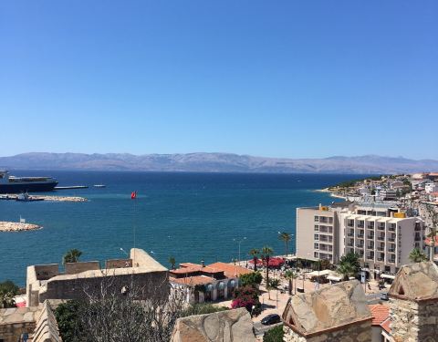 切什梅在土耳其第三大城市伊兹密尔的西部切什梅半岛的最西端,被爱琴海围绕,风光秀丽,这里也是当地人度假休闲的好地方,沿海有酒店,餐厅,酒吧。