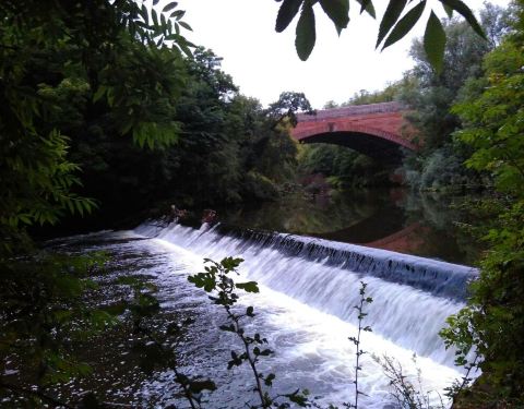 这里是格拉斯哥植物园,景色非常的漂亮,这里植被丰富,红色的拱桥横跨在水坝的上方,给人一种回归大自然的感觉,这里空气非常的清新,令人心旷神怡很舒服。