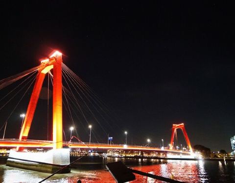 威廉姆斯大桥有一点像是缩小版的金门大桥,造型比较的类似,这座大桥是连接鹿特丹城市不同区域的一座主要的大桥,晚上的时候特别漂亮,大红色特别喜庆。