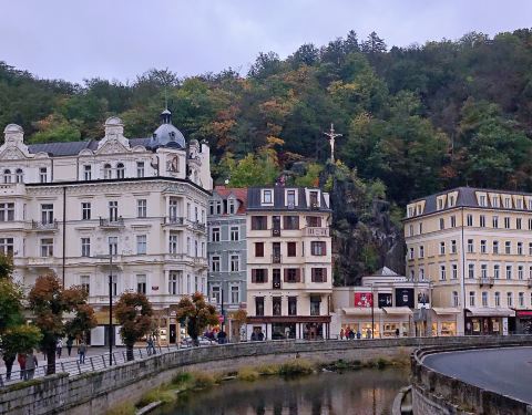 虽然不及CK小镇那么名声在外,但是因为温泉资源丰富的关系叭,所以,卡罗维发利小镇同样也是捷克著名的打卡地之一。 小镇的主干道已经被整体打造成了商业区模式,沿着蜿蜒的河岸而建,两侧都是一家连着一家的商铺。 而各家卖的也都是大同小异的温泉主题商品,温泉杯、温泉饼、温泉酒等等。 适合闲逛的街道,随意逛吃的午后~