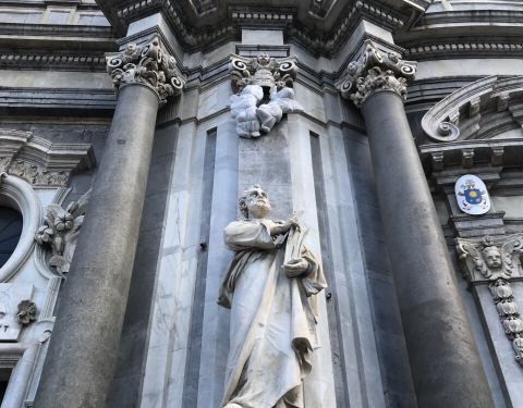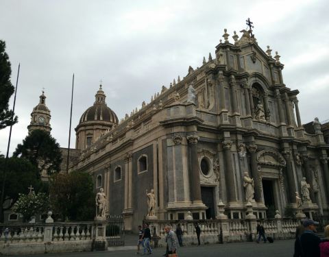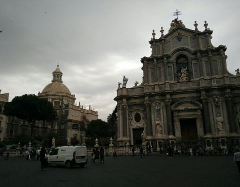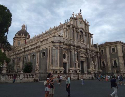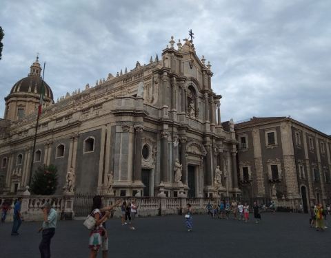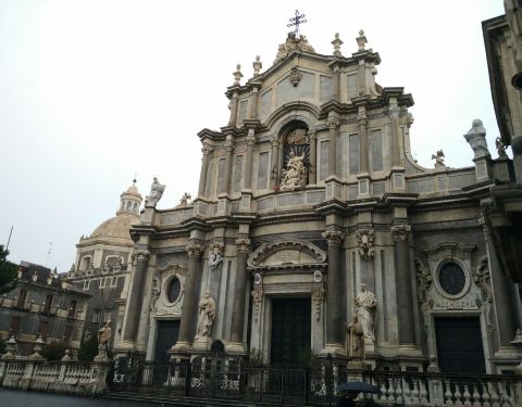 圣阿加塔大教堂是卡塔尼亚的主教堂,始建于公元11世纪,其后殿仍保留了最初的诺曼式结构,其余部分数次毁于地震。现在的大教堂主要部分复建于18世纪,是由埃特纳火山黑色的火山岩和锡拉库萨特产的白色石灰岩修建而成的巴洛克式建筑,正面雕刻圣阿加塔半身像,是意大利第三大教堂。慢慢细细看每个教堂都有自己不一样的特色。