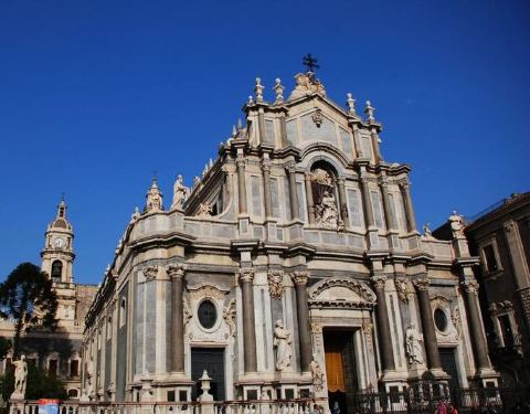 圣阿加塔大教堂是意大利第三大教堂,位于卡塔尼亚市中心,教堂以巴洛克建筑为主,后殿为诺曼式建筑,正面雕刻圣阿加塔半身像(卡塔尼亚守护神)。广场中心的大象喷泉是卡塔尼亚的标志性纪念碑,方尖碑更被认为有控制埃特纳火山的能力……