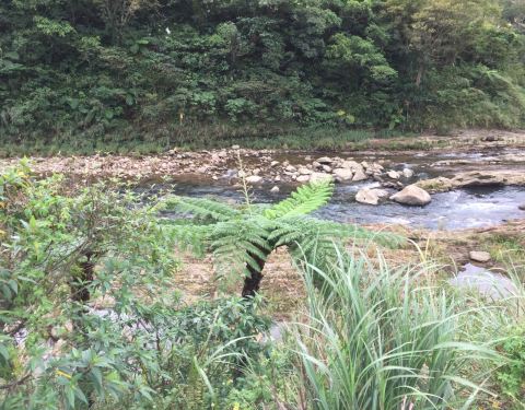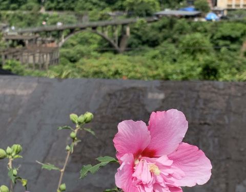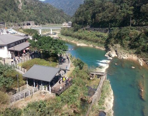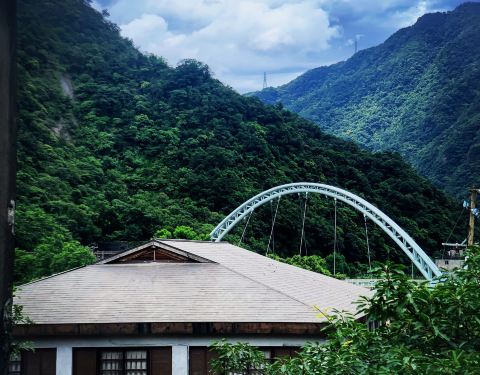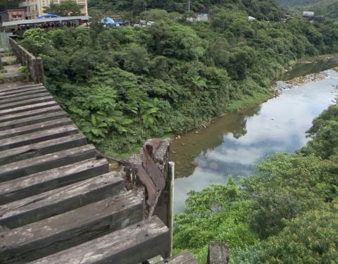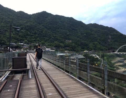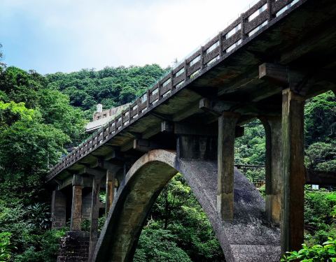 桥的一侧有「猴硐煤矿博物园区」的看牌,走到桥中展望溪谷风景,桥的另一侧有「猴硐神社」路标,依路...此行爬完瑞芳后车站附近三座海拔不高的秀崎、龙潭、瑞芳山,驱车至猴硐,停车于新介寿桥右转后的停车场,循着行人徒步区整修后的隧道、沿着溪岸走到介寿桥,桥的一侧有「猴硐煤矿博物园区」的看牌,走到桥中展望...此行爬完瑞芳后车站附近三座海拔不高的秀崎、龙潭、瑞芳山,驱车至猴硐,停车于新介寿桥右转后的停车场,循着行人徒步区整修后的隧道、沿着溪岸走到介寿桥,桥的一侧有「猴硐煤矿博物园区」的看牌,走到桥中展望溪谷风景,桥的另一侧有「猴硐神社」路标,依路标方向循石阶而上,叉路分为可直上「猴硐神社」或左转通「一百阶」,拾级而上,有木底座观景台,但展望多为绿树,风景有限,再上爬,见水泥方形底座,一旁凉亭看示牌上说明神社遗址只剩鸟居、参道,神社建物早已拆除,状况和花莲的玉里、凤林 、寿丰等地神社遗址雷同! 回介寿桥,向猴硐车站走去,在桥上可看到前方一座有着圆拱的高大桥梁,屹立于山水之间,后来得知系早期沿运煤桥,沿着溪岸前行,溪水清碧,急水处白瀑点缀,搭配溪岸奇特岩石,形成特色风景! 展开
