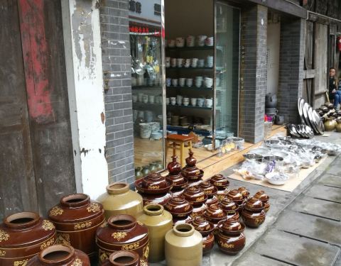 只不过是没有大规模开发过,小范围的在古镇街道边放了一些盆栽的绿化,镇里开发了几家饭店,满街都是...