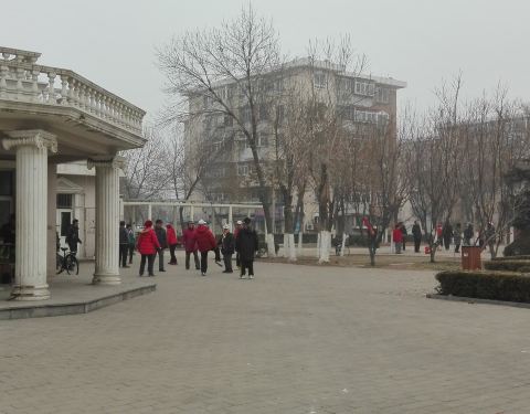 南苑公园坐落在天津市南开区王顶堤居民区,公园虽然不大可它却是附近居民健身娱乐的好去处,里面有个挺宽阔的小广场,小广场的背面是个古色古香的影壁墙别具一格还有个不太大的小长廊。天气暖和的时候小长廊可供居民们在此聊天休息,小广场可能就是孩子们的嬉戏打闹的天堂了,现在虽是隆冬季节还是有不少居民在这里踢毽、跳舞、打牌自娱自乐乐在其中。