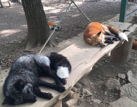 白石藏王狐狸村。狐狸村是日本宫城县白石市西北部的村庄,以狐狸著称,狐狸村内有6种狐狸,包括北极狐,银狐,青狐等,一共100只左右。在日本,狐狸是稻荷神(象征富饶,丰收和稻谷的神)的信使。交通真的很不方便,耽误一天的时间。从东京出发,坐JR新干线Tohoku Shikansen到白石藏王站Sh iroishi Zao Station 大约1小时50分钟,然后打出租车到狐狸村。回程的时候,可以让狐狸村帮忙叫车。乘坐出租车大约需要30分钟,单程4000日元左右。我去的季节赶上狐狸掉毛,没有冬天看上去毛发松软,很多狐狸都是懒懒的睡觉,但也没有耽误我对它的喜爱。这里的狐狸都是放养的,可以喂食还可以近距离的接触拍照。我错过了喂食的时间,只好等到下午拍照。可我怀里的狐狸真的很不老实,总动,我也担心它会咬我,即使换个小狐狸依然不老实,我对它们太温柔了,不舍得用力。走的时候真的很不舍得,以后有机会冬天一定要再去一次。