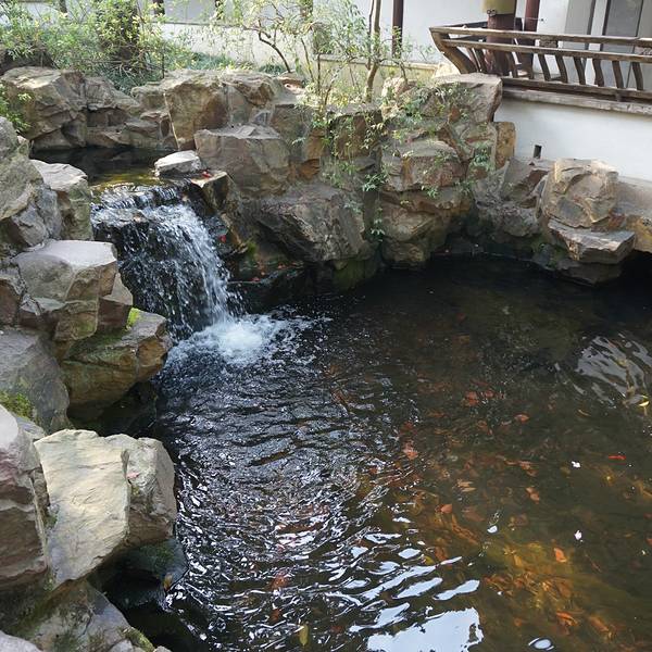 ...又多了几分书卷气,有个小亭子,里面还有一个石头做的棋盘,在这里休息一下、观赏一下锦鲤,非常舒服