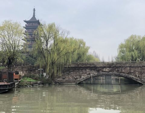 坐船南湖出口码头有一七层高的壕股塔。古时嘉兴七塔八寺之一,因北临城濠,其水曲如股而得名。相传,苏东坡曾到此饮茶,并与文长老在此谈天说地。可以说历史文化悠久。壕股塔及其禅寺在宋元时非常兴盛。此塔为新...