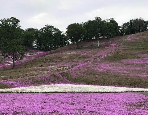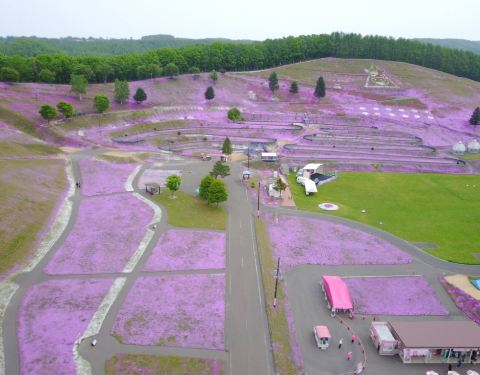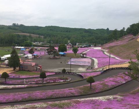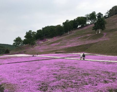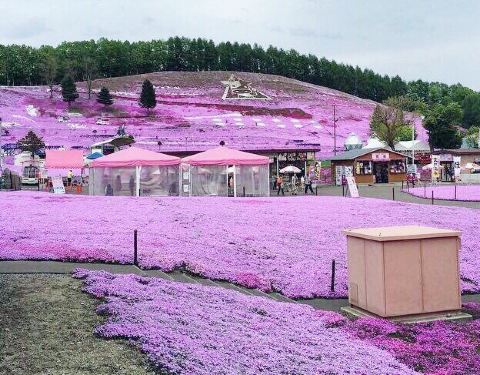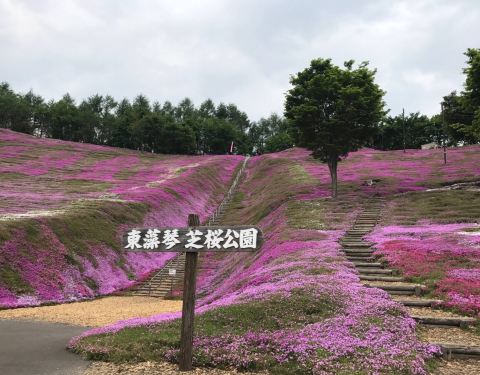 每年5月中旬到6月下旬,东藻琴芝樱公园所在的整座山丘,开遍了粉红色的芝樱,远远看去如同画布一般,色彩艳丽让人心动。芝樱并不是樱花,它因花形长得像樱花而有“樱”的名称。芝樱也不是长在树上的,而是覆盖在草地上,有的是桃红色,有的是雪白色。