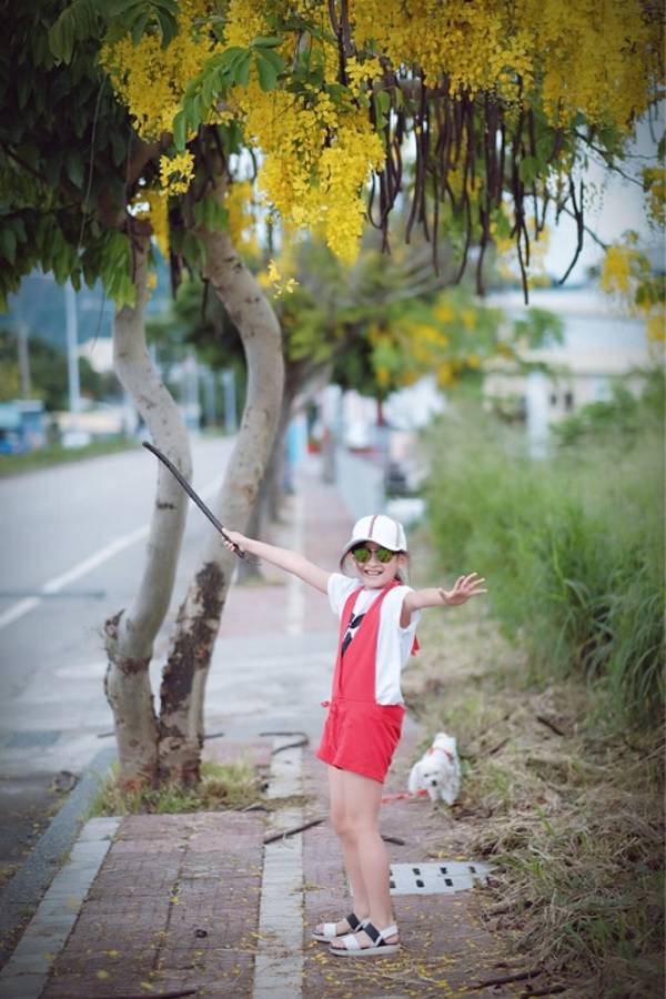 「 如何利用一棵樹拍出親子大片?」 只要出了家門,我就有去旅行的趕腳😅😅(也太好打發了吧)是誰說過最美的風景永遠在路上?害我只要出門就一直看著車窗外(誤)🤣 今天要分享的是怎樣在不起眼的角落拍出漂亮的畫面?重點是不用花錢、不用花錢、不用花錢!🥳 (1)在出發的路途中,隨時觀察路邊比較特別又有美感的東西(什麼是美感?當您感覺一件物品、一個畫面很美,可能是它的「色彩」「比例」「質感」「結構」「構造」或「構成」讓您的視覺感受舒適愉悅,我們稱這六個名詞為「美感構面」)那東西呢?包括建築、山海、花草、石頭、招牌、桌椅、塗鴉、路燈等等。只要有讓你驚艷的點就可以。 (2)在保證人身安全的前提下,可以拍大片了😎,根據當下場景的大小和整潔度,調整光圈和ISO值,把人物擺放在畫面中的黃金位置,場景大,人物要小,場景小,人物則大。 (3)突出主題,自然放松,可在母子互動時高速抓拍,回家再選片。 (今日親子裝穿搭分享:運用同色系(紅、白色)和運動風(黃色鮮明的數字7⃣️和同色棒球帽)),跟金黃色的阿勃勒花束形成強烈的視覺衝擊,寵物狗狗的紅色頸圈起到化龍點晴的作用,讓親子主題更加突出。)