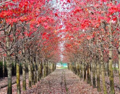 枫叶岛位于廊下镇山塘村,是一片免费的开放式枫树林,也是上海市郊近年比较火的赏枫地。 这里种着北美红枫、北美枫香和红叶石楠等树种。每到深秋,枫树的树叶渐渐变成红色,远远看去,景色迷人。如果是正值枫叶红了去,那肯定人很多,特别是双休估计都没地方停车,不过景色还可以,色彩浓郁,真的可以说是非常漂亮。每年枫叶好看的时候只有短短十来天,建议大家提前关注开放时间!