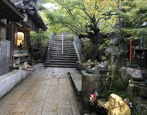 長い階段を登ります。紅葉が多いので、紅葉は綺麗でしょう。 お地蔵様も可愛らしい。 全てを参拝するには、時間かかりそうです。 境内も広いです。 雨だったが、風情ありました。