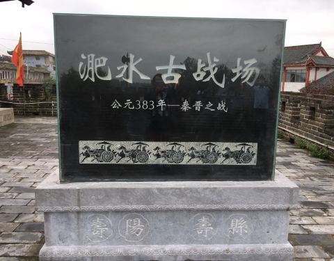 寿县古城墙属东门即宾阳门最有味道,城墙上的青草越发显出历史的苍桑感。上城楼要收费10元,瓮城是免费开放的。城墙上有两块标记,分别是1954年、1991年发洪水时的水位线,所以寿县的古城墙不仅有防御的功能还有防涝的功能。行走在凹凸不平的青石板路上,看到深深的车辙印子,仿佛历史的凝固。