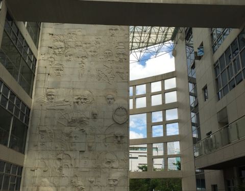 这种感觉非常棒.人不是特别多很安静.休息的时候坐在图书馆晒太阳很惬意.旁边的欢乐颂可以吃东西和逛街