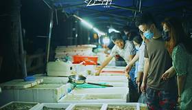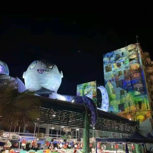 夜幕降临,码头会有比较密集的灯光。伶仃湾广场的拱桥走过去,对面亮灯的地方就是海鲜集市。岛上的餐厅还在营业,不算拥挤,也不冷清。