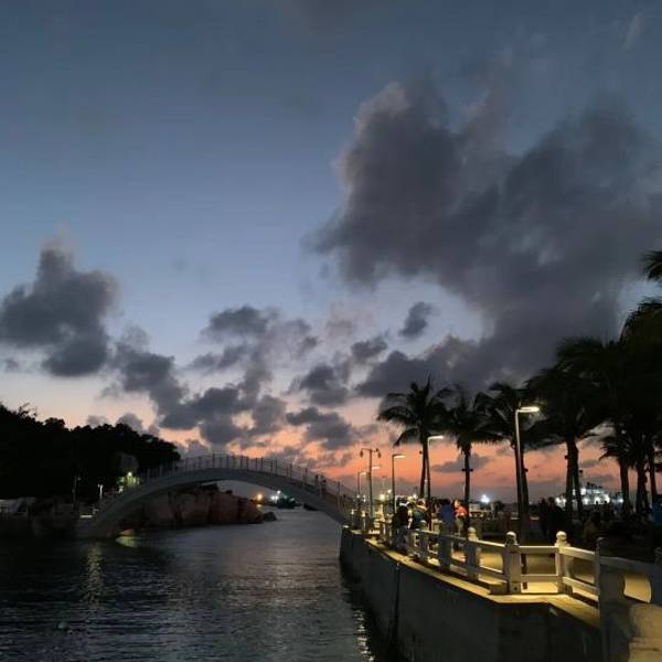 夜幕降临,码头会有比较密集的灯光。岛上的餐厅还在营业,不算拥挤,也不冷清夜幕降临,码头会有比较密集的灯光。伶仃湾广场的拱桥走过去,对面亮灯的地方就是海鲜集市。岛上的餐厅还在营业,不算拥挤,也不冷清。
