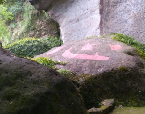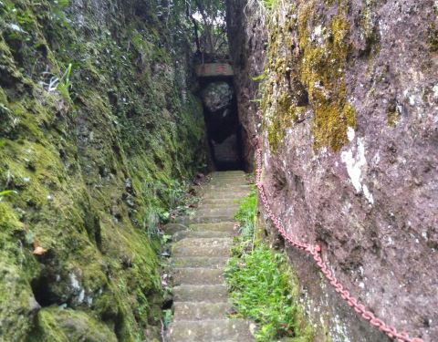 ...较险,特别是岩顶路况不行,下雨路滑有危险,右道下山在岩脚处有一些石刻,小庙,水地,稍稍有点味道