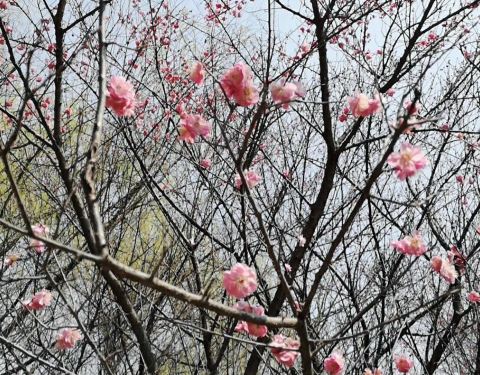 早春时节有梅花,白色的最先开然后是红色的,也有夹杂着腊梅。很美。湖州赏梅胜地!