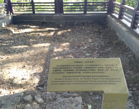 现存遗址分三层,占地约2000平方米,两层平台之间由数十级台级相连