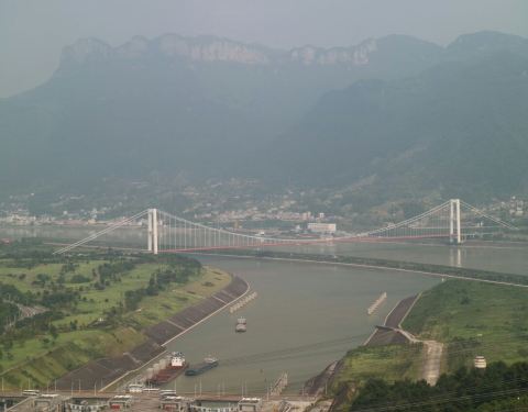 到三峡大坝的时候就要路过这座桥,这座桥作为一座悬索桥还是非常漂亮的,过去就是大坝生活区。