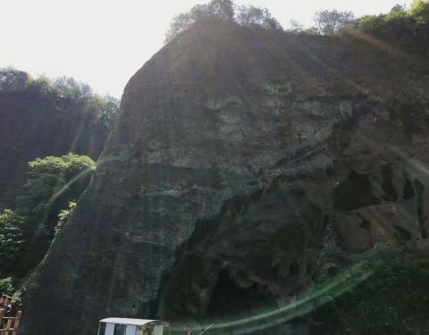 炎热的夏季,准备到浏阳大围山避避暑,开车经过象形山,顺便进去看了看。象形山景区不大,景区有一条河流,沿着这条河一路走过去,就可以看到了。远看像是一头大象站立着在喝水,走进了,发现一张笑眯眯的大象脸,挺有意思的。