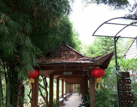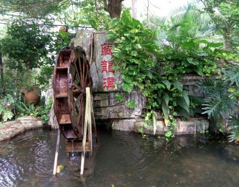 藏龙沟:2015年的夏天,去了一次肇庆市鼎湖区的藏龙沟。不知道为什么,明明离藏龙沟很近,却从来没有去过。去之前,搜索了一下,发现原来藏龙沟旅游风景区位于肇庆市鼎湖区凤凰镇九坑河水库的主干流的源头,距鼎湖凤凰镇321国道路口8公里。经专家认定,藏龙沟负离子每立方含量达90000个,100[%]天然大氧吧,沟内山泉常年不断,天然植物众多,最具代表性是恐龙年代植物桫椤,沟长6000米,满布奇石瀑布,内分三大区域:植物区、溯溪区、攀抓区(探险区),适合各类人士户外活动。我们沿着溪水溯水而上,大概一个多小时吧,只见满目青翠,古树参天,古藤缠绕,溪水清凉,瀑布哗哗,吊桥晃晃悠悠的,走上去有点刺激,很好玩。玩得尽兴了,出来景区外面的农家饭店,点上几个地道的农家菜,大快朵颐呢