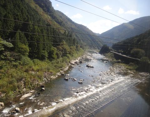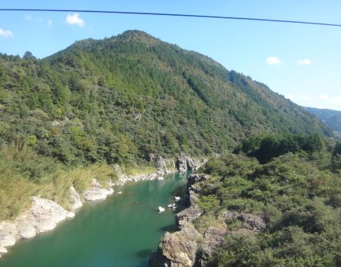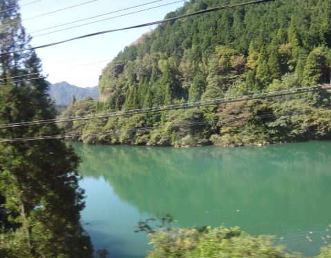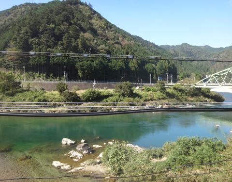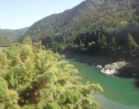 从名古屋坐JR到高山的途中经过长良川,河水清澈见底,特别是在蓝天白云的衬托下更显翠绿,河面平静如镜把山的倒影完美呈现出来,山川、河流构成了一幅幅如画的美景。