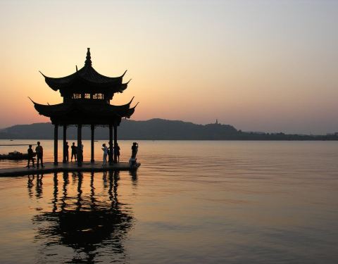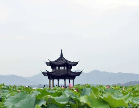 湖心亭非常古典优美的造型,可以眺望四周西湖美景