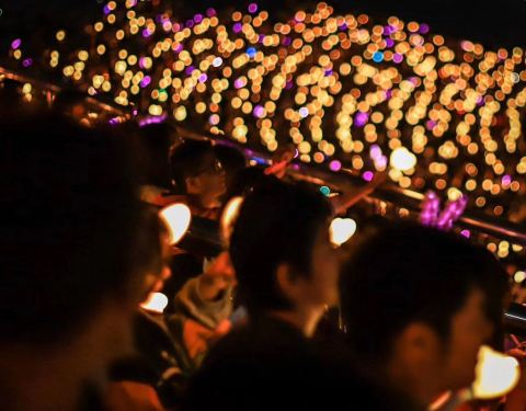 有点北京鸟巢的感觉,作为业界胜景,以鸟巢的名气,被模仿那是再正常不过的事。灯光很是华丽,在蓝色、绿色、黄色、红色、紫色之间切换。