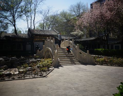 碑林系古典园林式建筑,镌刻着大师中晚期书法80多件,还刻有众多著名书法家的咏怀之作它 1990年建于河北区宙纬路。碑林系古典园林式建筑,镌刻着大师中晚期书法80多件,还刻有众多著名书法家的咏怀之作。门楼红檐灰瓦,朱红的大门上方是赵朴初先生题写的黑底描金匾额“李叔同书法碑林”。进了门是一...它 1990年建于河北区宙纬路。碑林系古典园林式建筑,镌刻着大师中晚期书法80多件,还刻有众多著名书法家的咏怀之作。门楼红檐灰瓦,朱红的大门上方是赵朴初先生题写的黑底描金匾额“李叔同书法碑林”。进了门是一个幽静的小院。小院宽不过20米,长不过30多米,正中央是一湾水塘,上面横跨一座汉白玉石拱桥。越过小桥是一段长廊,绿柱红檐。正对院门,是弘一法师一米多高的铜塑像,大师盘膝而坐,手心朝天。塑像后的墙上是贺敬之题词“魂魄化成精卫鸟,血花溅作红心草。看从今,一担好河山,英雄造”。这是李叔同矢志报国,一片丹心的写照。小院的四周栽满了海棠和冬青,院中空地上栽着丁香和月季。这里是赏海棠绝佳的地方。前几年每到初春,我们两人都到这里来。坐在廊下,满眼海棠花绚丽多姿,满院丁香花芬芳扑鼻,实在令人陶醉。 展开