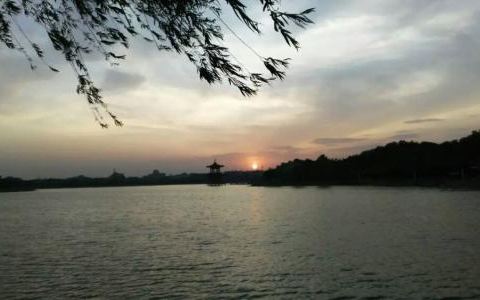 然后登到山顶看落日,很美。适合下午散步,绕着临潮湖走一圈,大概三公里