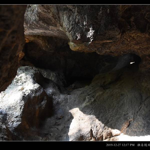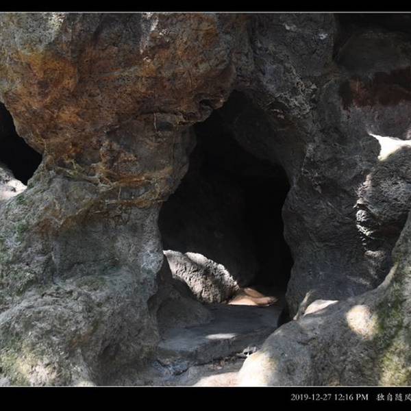 我所到的第一个景点叫做“ 九龙 岩”。锁好了车,我往下面深处走去。 天气不错,强度不大,我真是那种闲庭信步地往前溜达。 继续前行,不知道 九龙 岩在何处,是个什么风景 不一会儿,看见路边一堆怪石嶙峋,山头上有红漆描涂的大字,走到近前一看,果然“ 九龙 岩”。 我看见洞口狰狞,还有铺设的台阶可以进入,于是来了情绪低头就往里探去。没想到仅仅拐进去没几步,这洞是个死洞并无其他出口,也只能悻悻然返回出来,没什么意思。 “ 九龙 岩”旁边还有一个山洞,里面虽然没有想象的那么大,倒是平整。 出来一看说明牌子,原来是一处聚众学习的地方。 走到这里后,前行的路曲里拐弯遥遥无期。堵住几个从对向走过来的游客一打听,往下走要老远老远... 我的车还放在这里呢,得了!原路返回到车边,开车再去下一个景点吧。