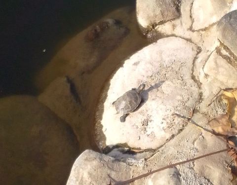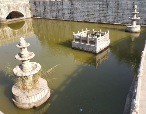 就在市政广场后面的万佛园内,经一道斜坡即是地方不大,湖中锦鲤成群、龟鳖无数,有曲廊凉亭越湖,环岸桃树成林、小径通幽,环境清雅,适合闲散游走~