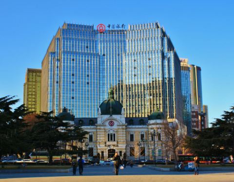 中山广场上面最美丽的建筑,外观欧式,背后是新建的中国银行大楼,对比强烈,很漂亮。