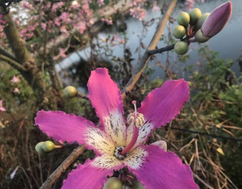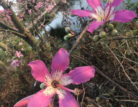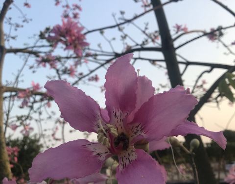 美丽的异木棉,只有花没有叶,粉色的大花美丽极了