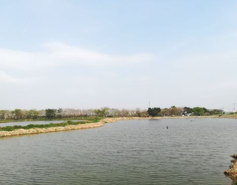 牛田洋一派田园风光,养殖青蟹的大池子一个连着一个,还可以看见觅食的白鹭。