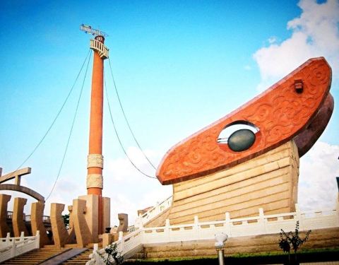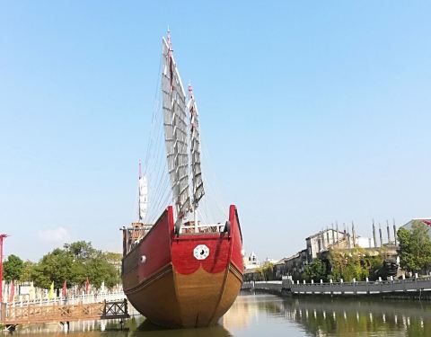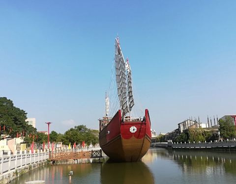 这公园其实没什么看头,抱着对潮汕精神的欣赏就驱车10多公里从汕头老城出发,过了江就是了。这里是记念以前出海谋生的潮汕人漂洋过海而造的大船,公园不大,两旁是绿化,走走坐坐1小时够了。