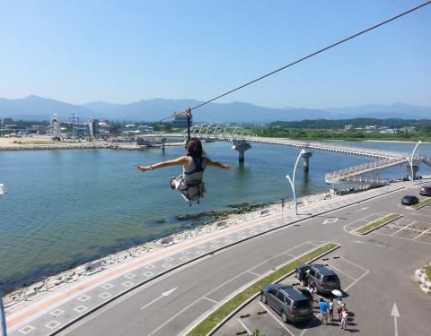 就在江原道江陵市安木咖啡街那边~~ 高空飞索体验看海景,应该很有意思~~
