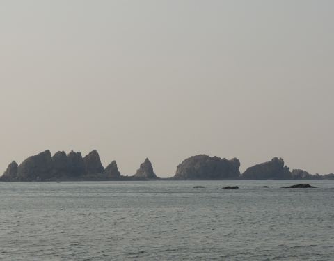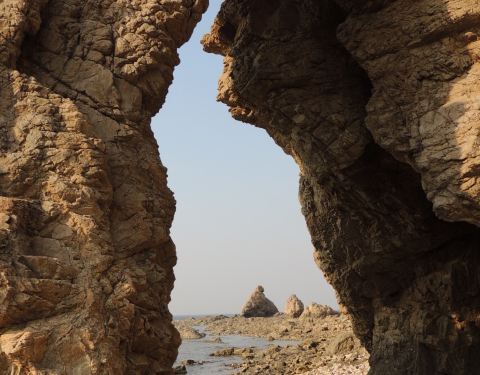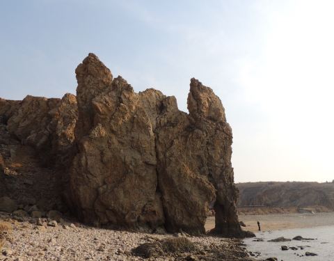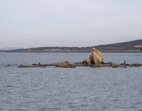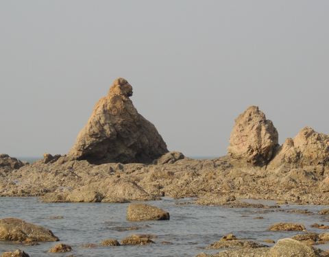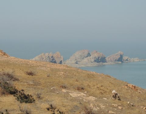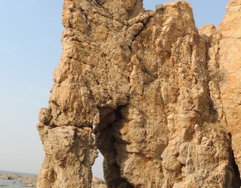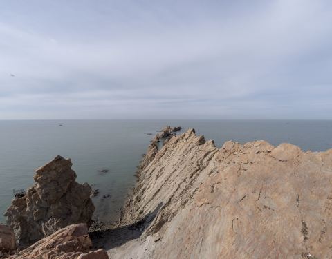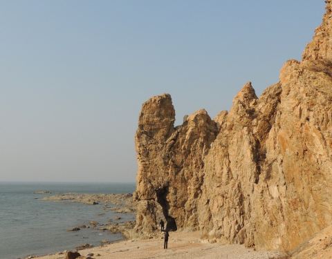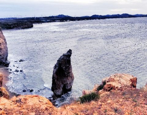 首先高德地图搜索“骆驼山海滨森林公园”导航到的地方是不对的,只是一片荒地。可以继续向前走2km左右到“八仙岛”海滨浴场看看海,这时你向南看可以看到骆驼山,据路人说应该往回(南)开10km左右可以到骆驼山。在海边向西北看你可以看到很壮观的排石,高德地图搜索排石景区,向东北方向继续开车6km,走盘山路可以到达拍时景区,景色还是很震撼的。