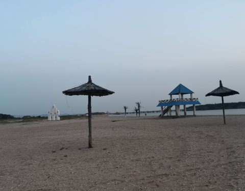 很好的一个海边浴场,周边有情人岛,还有九仙女雕像,夏天来度假的人很多,还有开着房车在这里练习帆...