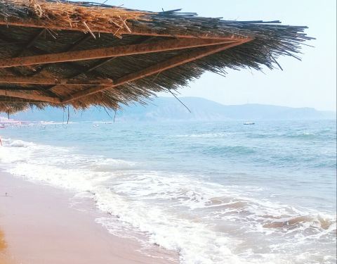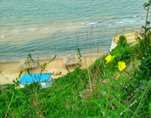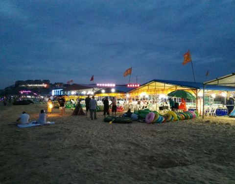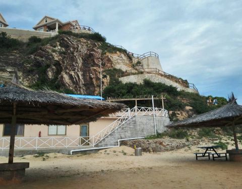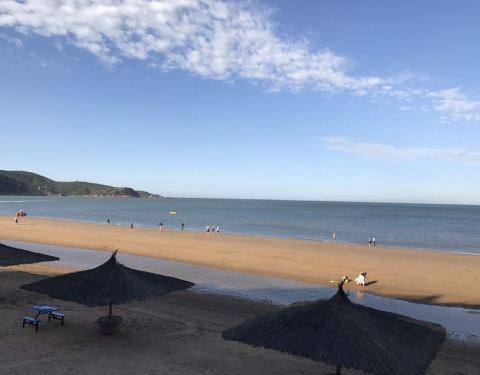 别墅区的海滩 人不是很多 海水也清澈 沙子很细 可以住别墅喝蒙古包