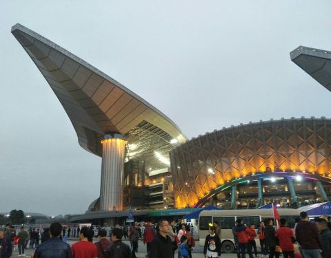 今日慕名而来观看2019中国杯决赛 泰国vs乌拉圭 体育馆盖的很漂亮 工作人员准备很贴心 球员踢得很精彩 完美