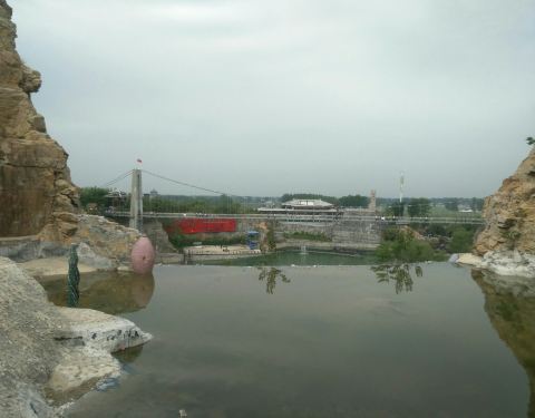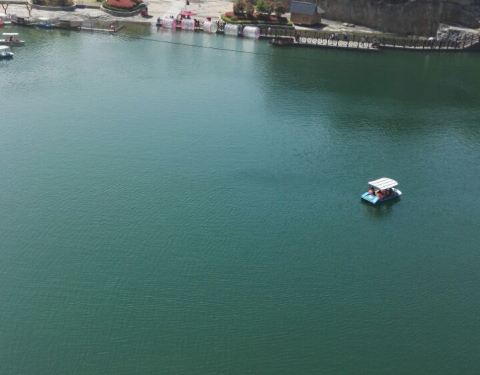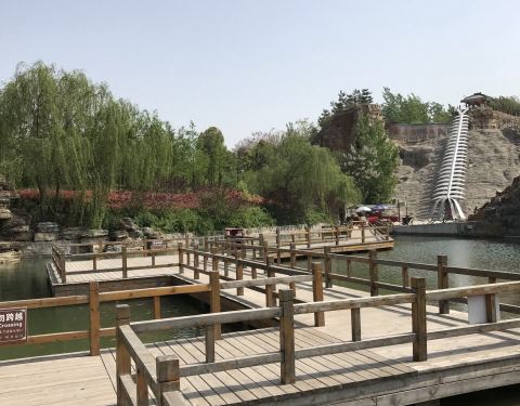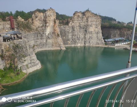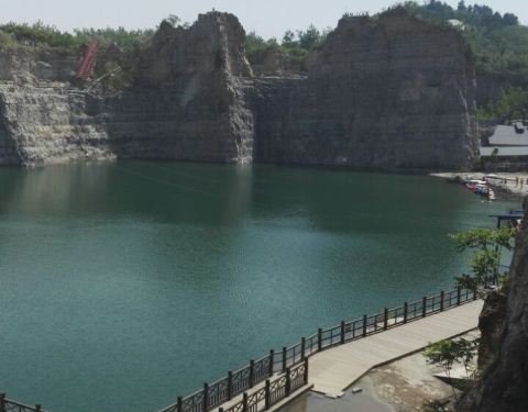 是开山取石后留下的凹地,有儿童游乐场,票价三十元,建了一个几十米长的玻璃桥,上玻璃桥要再另外买票,感觉不值就没进去,在外面拍了几张照片走人。