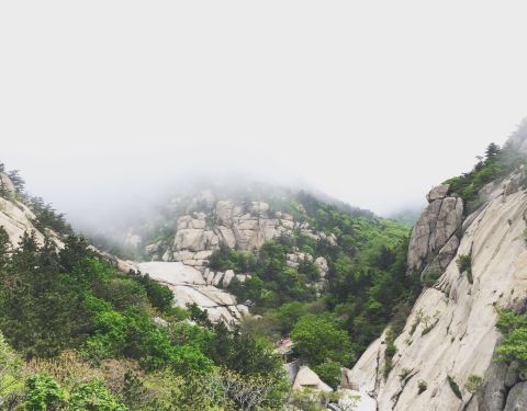 崂山劈石口也是一处奇石汇聚的地方,这里是在数百万年前地质活动中形成的一处落石群。有的像巨大的寿桃,有的像石猴,还有的像一只绵羊,各式各样,令人不得不赞叹大自然的鬼斧神工。