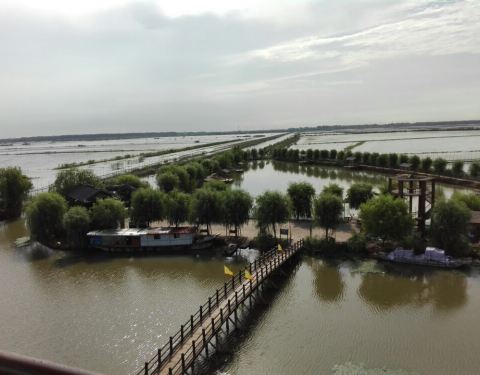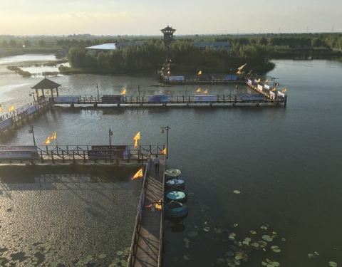 高邮湖中的湿地公园,有芦苇荡,需要坐船过去,之后可以坐游艇去到湿地公园,穿过高邮湖顺道欣赏芦苇。里边还有些娱乐项目,可以自己租船,有踩的和电动的,租了自己踩的,很安全蛮有意思的。湿地中还有个楼,可以登上去欣赏整个全景。