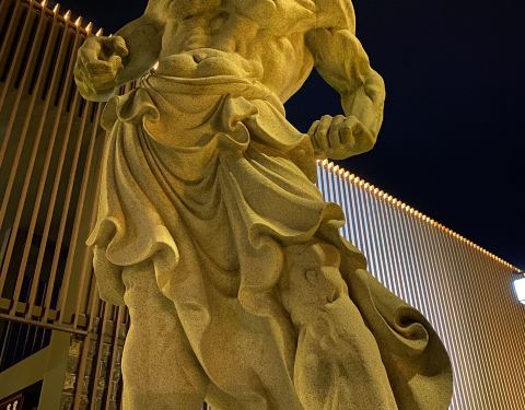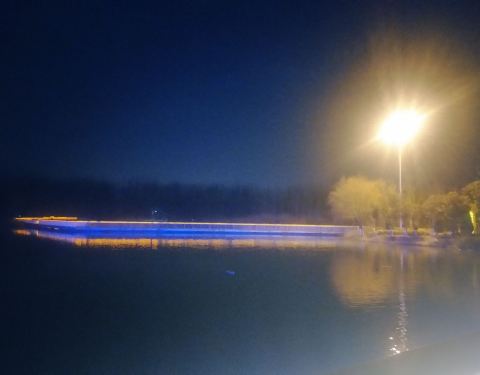 夜空是那么美丽,夜晚的灯光散发出美丽的景色,金点闪烁的光芒把水月禅寺映照的更加美丽漂亮。