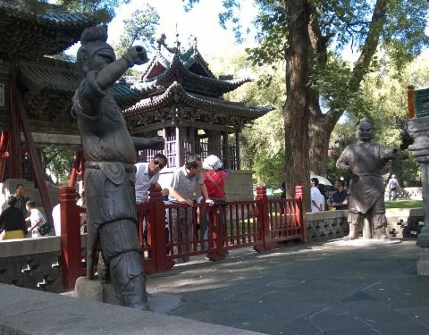 是晋祠内非常古老的知名的一处景点,台上伫立着几座宋朝时建造的铁人像,历经千年,虽有部分残损,但风采依旧,让人对宋代的冶金技术十分叹服。