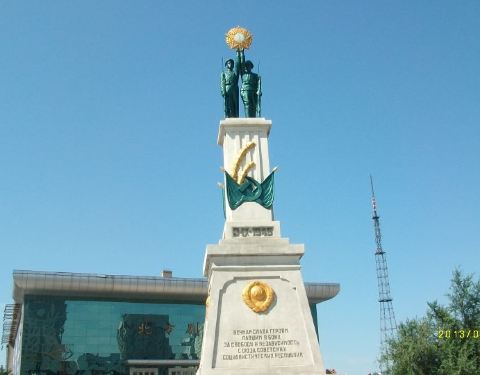 紧邻黑龙江博物馆,约两层楼高,碑体由镶嵌金字的白色大理石和绿色前苏联士兵组成。为纪念当年攻打日本的苏联士兵而设立。纪念碑外部有围栏,不能靠近。碑文大意是解放东北的苏军烈士永垂不朽。不过,非我族类,其心必异,看着这个玩意,总感觉怪怪的。