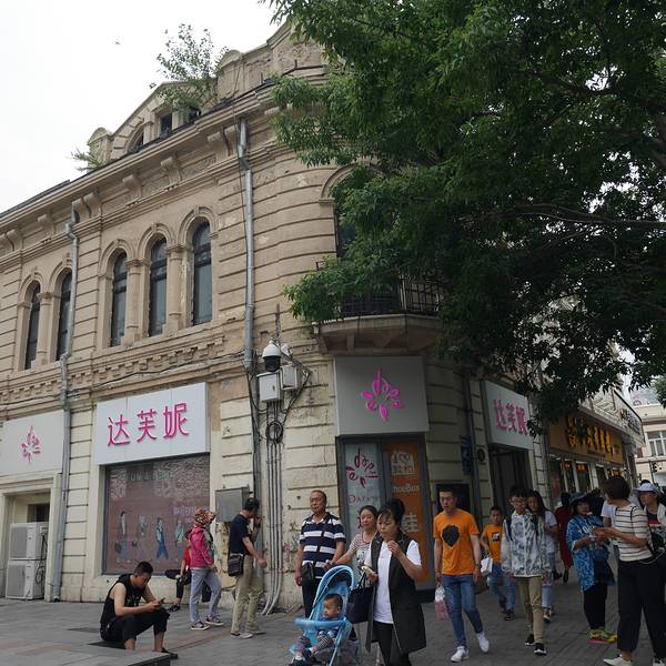 #写点评拿旅行基金#树太高挡住了建筑的侧面,建筑又有些旧了,看不出外墙的细节,如果不是门口的标牌可能会旺季这是保护建筑,在中央大街最繁华的路段。